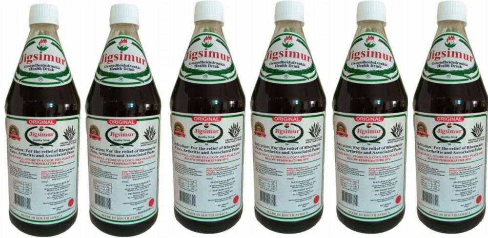 Jigsimur is brewed from the sap found in the Aloe Ferox plant which is grown in the Western Cape of South Africa. The calcium, magnesium, potassium and zinc in Aloe Ferox is much higher than in Aloe Vera. The use of Jigsimur improves your overall health and immune system and is used for the treatment of Arthritis, Gout, Fibrosis, Diabetes, Migraines, Insomnia, Gall and Kidney stones, Throat infections, Heart burn Colic, Stomach ulcers, Bladder infections, Haemorrhoids, Shingles, Constipation, Osteoporosis, Tonsillitis, Eczema, Hypertension, Conjunctivitis and many other minor ailments.